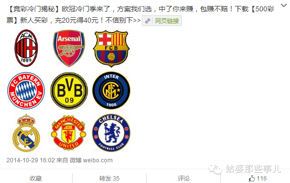 互动率:0.8%-1.2%,以足球热门球队队徽为配图,文案引导购彩活动,直接影响精准目标受众,效果转化明显。