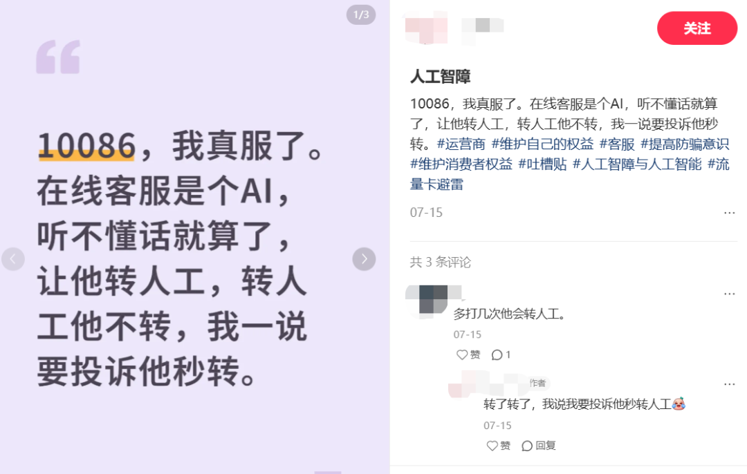 AI客服很容易出现与用户的沟通障碍。不少网友吐槽,中国移动的在线AI客服“听不懂人话,难以交流,转人工也非常困难。”
