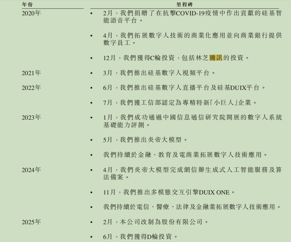 2022年至2024年,硅基智能经调整净亏损分别为4622万元、2941万元和3524万元。直到2025年上半年,公司按未经审核的财务数据计算,期内亏损为829万元;按非国际财务报告准则计量经调整后,其净利润为529万元。