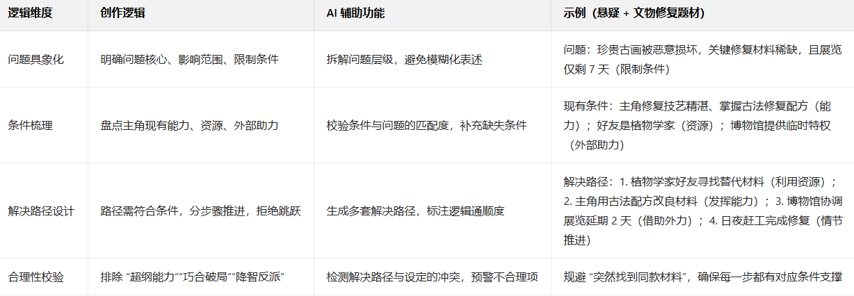 - 避坑方案:用 AI “条件匹配校验”,确保解决路径必须基于主角已有的能力、资源,避免 “突然开挂”;