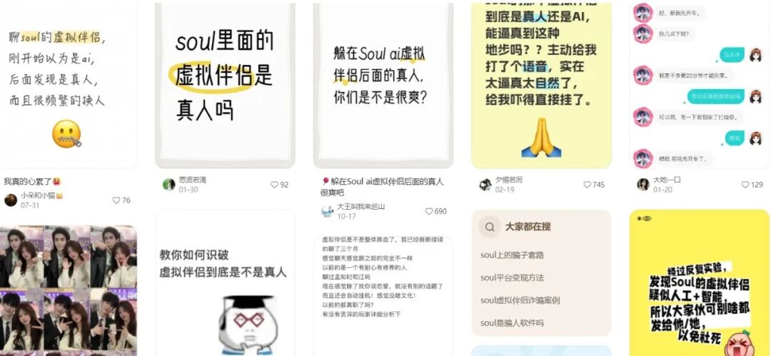 虚拟伴侣是最近一年AI落地最热门的应用方向之一。不过“趣解商业”也注意到,关于Soul的虚拟伴侣,不少用户质疑其有“真人参与”以及诱导消费。有用户表示,从AI伴侣的对话里确信有真人客服的参与,还有用户直言,曾被AI伴侣索要照片,被Soul的“屿你”邀请至杭州东站赴约。