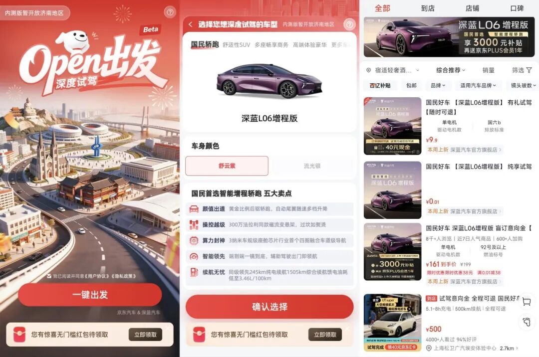 4月13日,京东汽车与深蓝汽车正式签署战略合作协议,双方宣布国民好车2.0正式锁定深蓝L06增程版,该车将在京东独家销售。与此同时,不久前“京东进军网约车业务”的传闻,也被证实是京东与深蓝合作在济南地区推出的“Open出发”上门试驾服务。