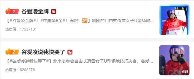 夺冠时刻,微博近乎一半热搜都是相关话题,前二热搜话题更是直接爆掉,大家都对这个天才少女不吝赞美。