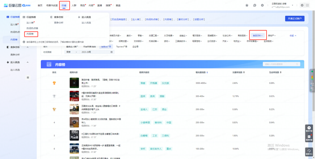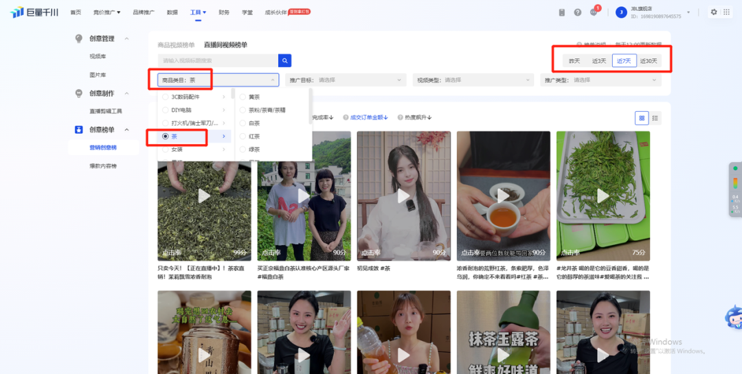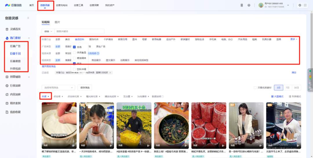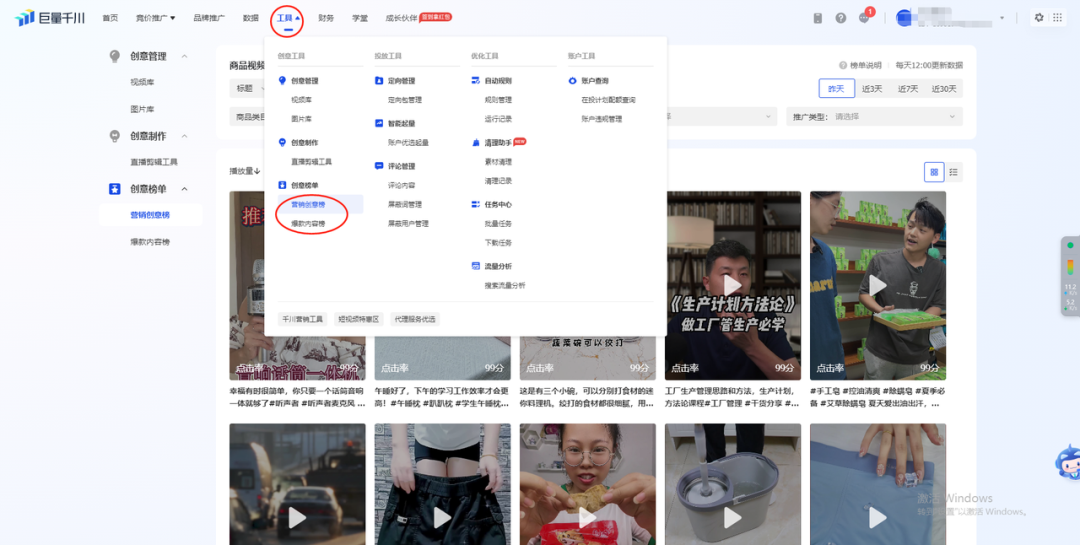巨量千川-创意榜单-营销创意榜/爆款内容榜;