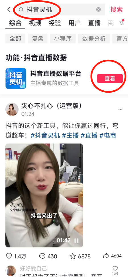 进入抖音-搜索“抖音灵机”-进入抖音直播数据平台进行查看即可。