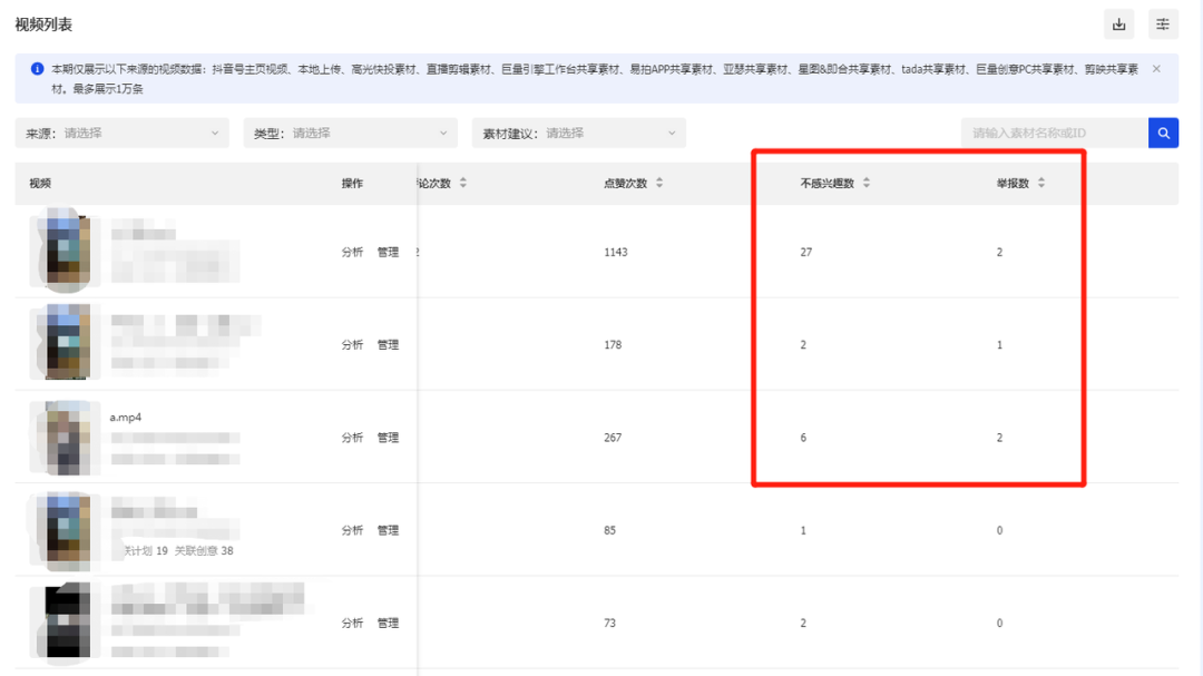 查看目标视频的对应数据,仔细分析是否掉量原因出自此处。