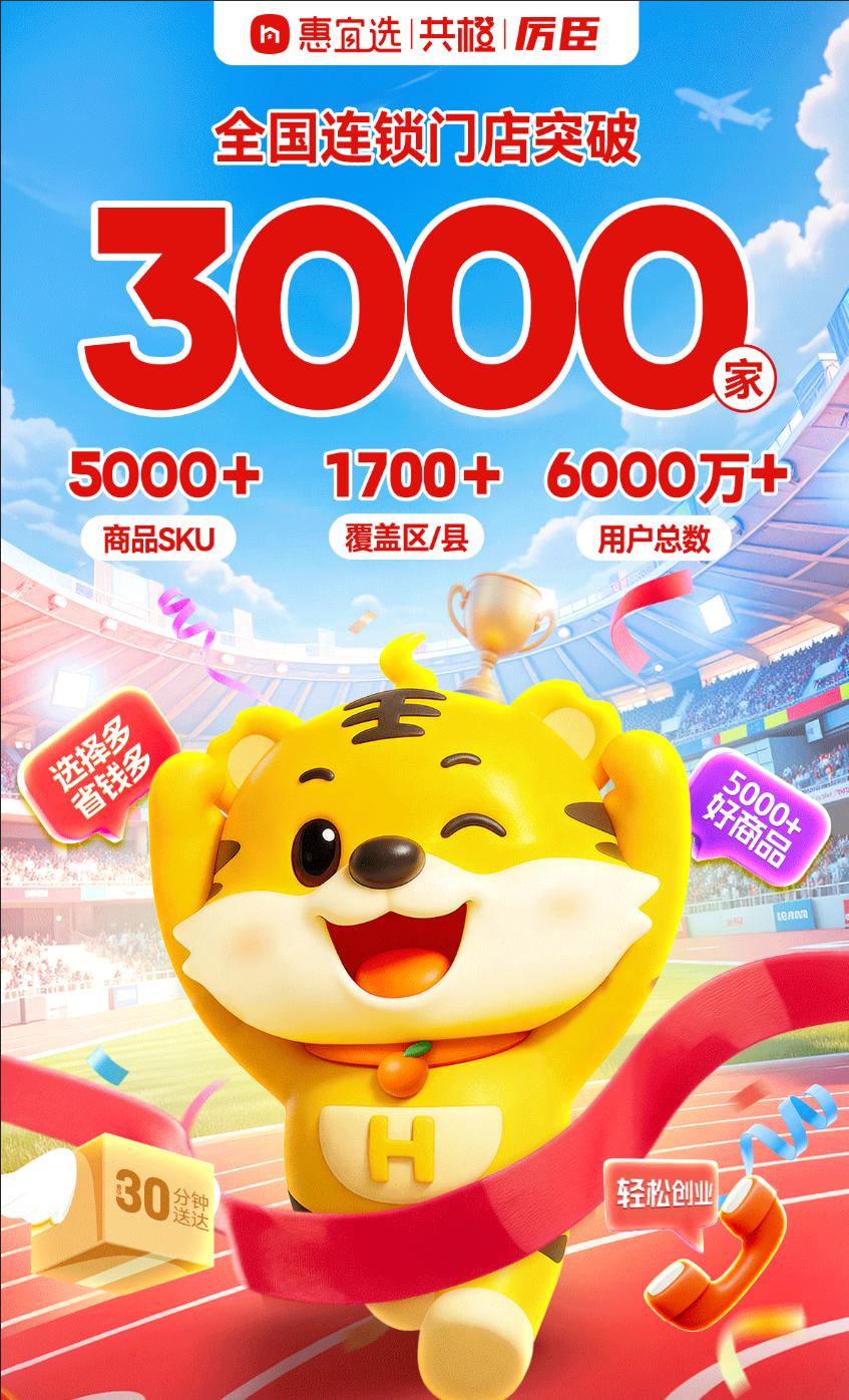 3000 家门店的里程碑不仅印证了惠宜选在闪电仓赛道的领军地位,更彰显了其 “轻库存、强供应链、多模式加盟” 的核心竞争力,随着全国仓配网络的持续加密与数字化能力的深度赋能,这家坚守 “长久陪伴用户” 初心的企业,有望在即时零售的蓝海中开辟更广阔的增长空间。