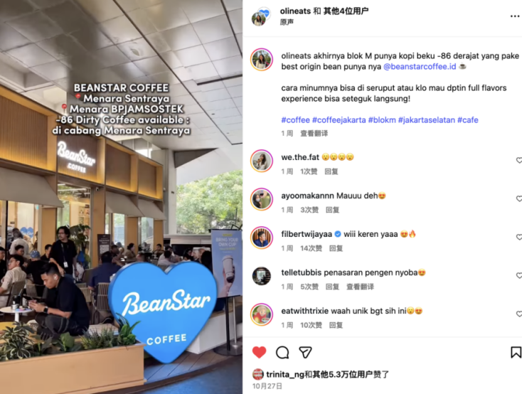 无论是国内的黑芝麻系列,还是海外的金箔拿铁,比星咖啡都坚守精品平价的核心定位。这种灵活务实的策略,使其成功切入海外主流消费场景。例如,在印尼市场,比星咖啡曾创下门店日销800杯以上的业绩,证明了其精品平价定位与产品创新模式能够跨越文化差异,吸引更广泛的消费群体。