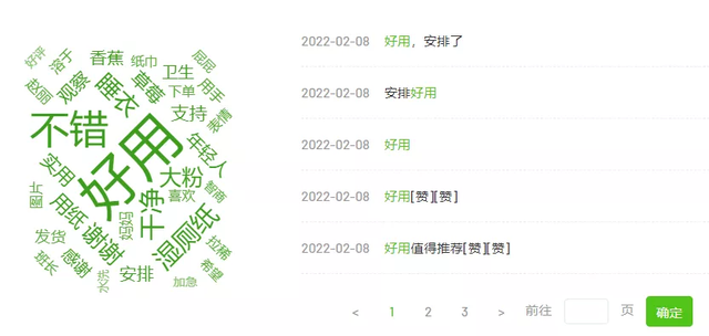 从评论词云来看,好用、不错等正向词出现频率较高,也说明用户对该商品的认可度较高,使用意愿较强,有利于促进转化。
